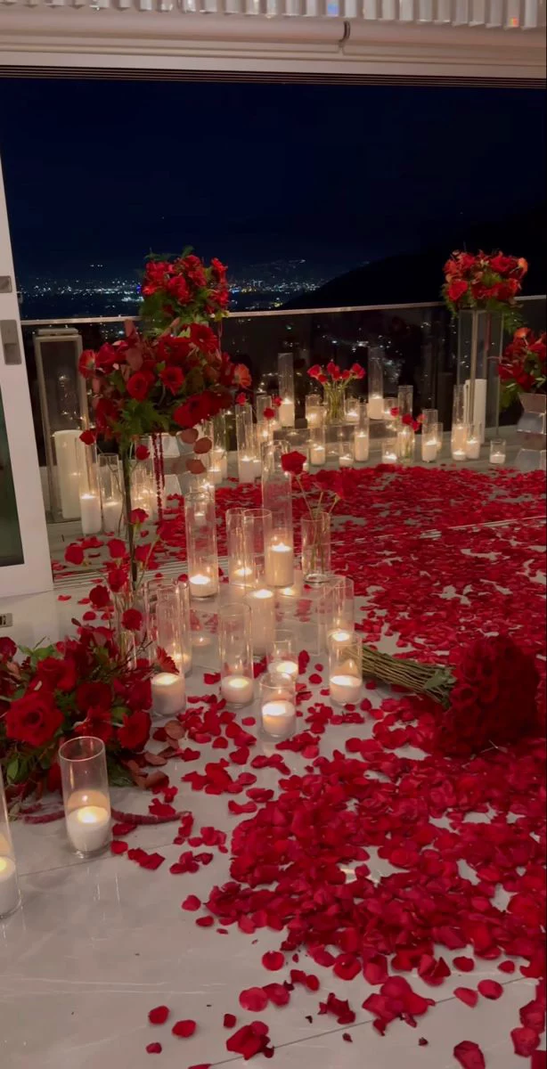Installation romantique pour une demande en mariage.